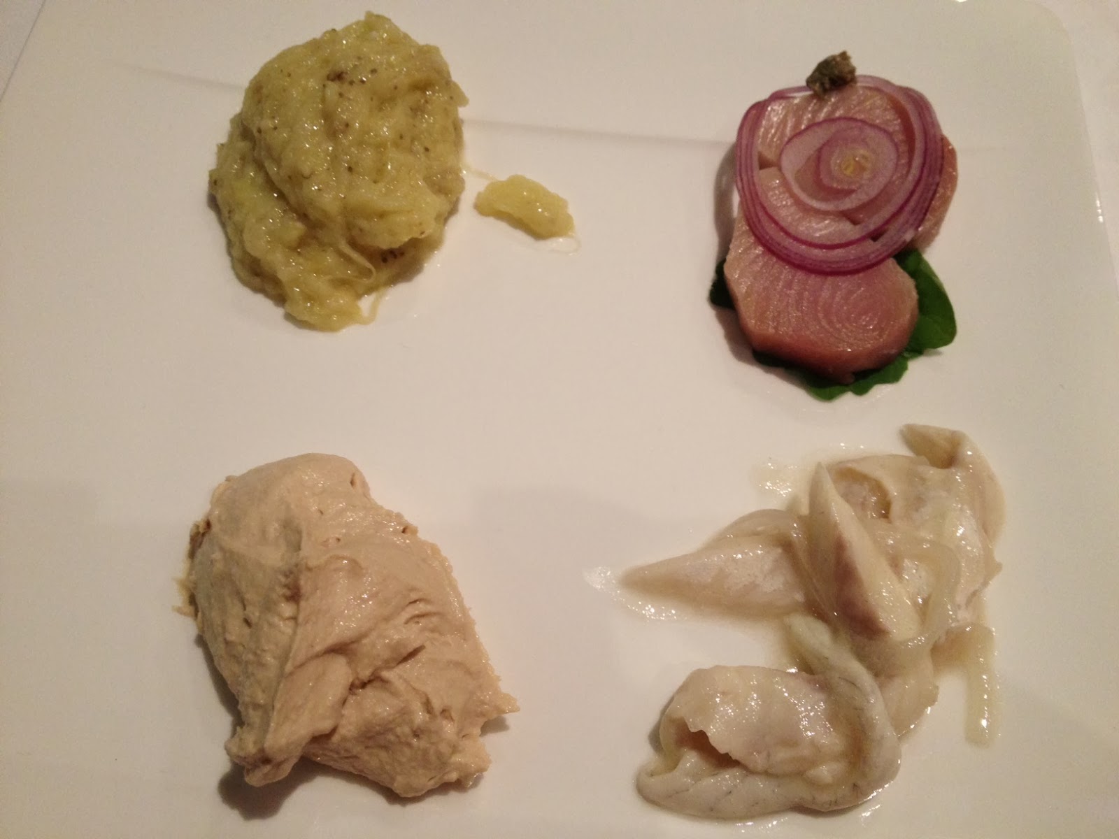 kokoreç, şarap soslu ahtapot ve kağıtta karışık deniz ürünleri ile